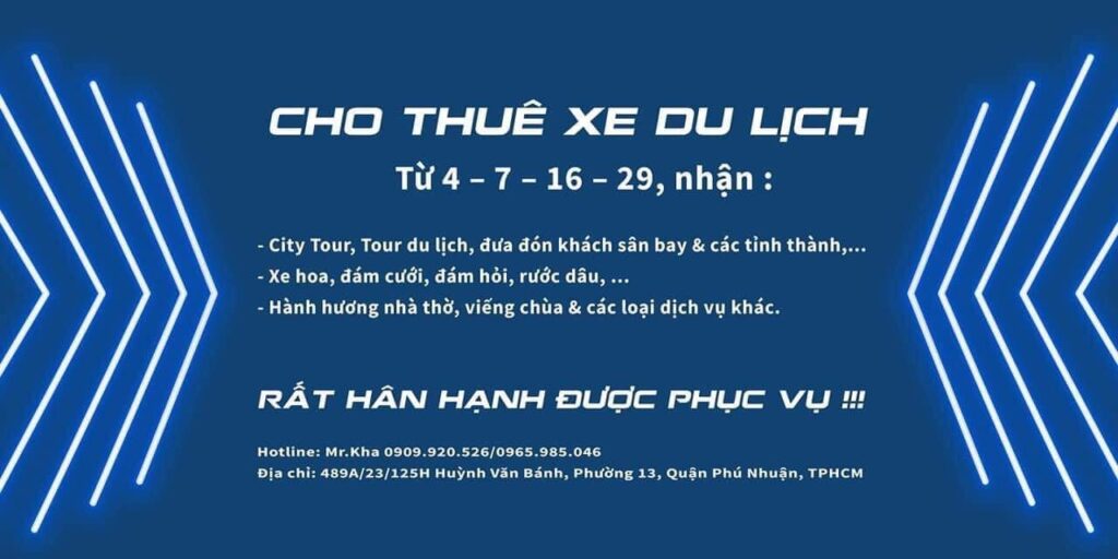 - Cho thuê xe hợp đồng đi du lịch trong và ngoài tỉnh
